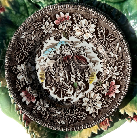 Vintage 1930-40’s English Brown Horse Portrait Plate Creamware Plate Embossed Border