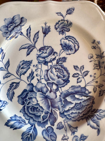 Vintage England Blue & White Transferware Plate Apple Flower Dogwood Blossoms