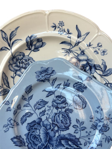 Set 7 Wall Display Mix n Match Vintage English Blue & Brown Transferware Plates & Platter