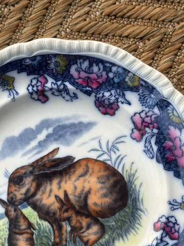 Vintage / Antique Bavarian Woodland Lop Ear Bunny Rabbits & Hare in the Forest Plate