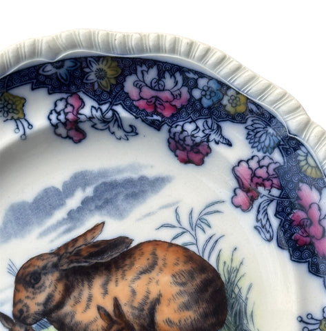 Antique 1891 Copeland Spode Flow Blue Polychrome Rabbit Plates – Rare Pair  Victorian Transferware