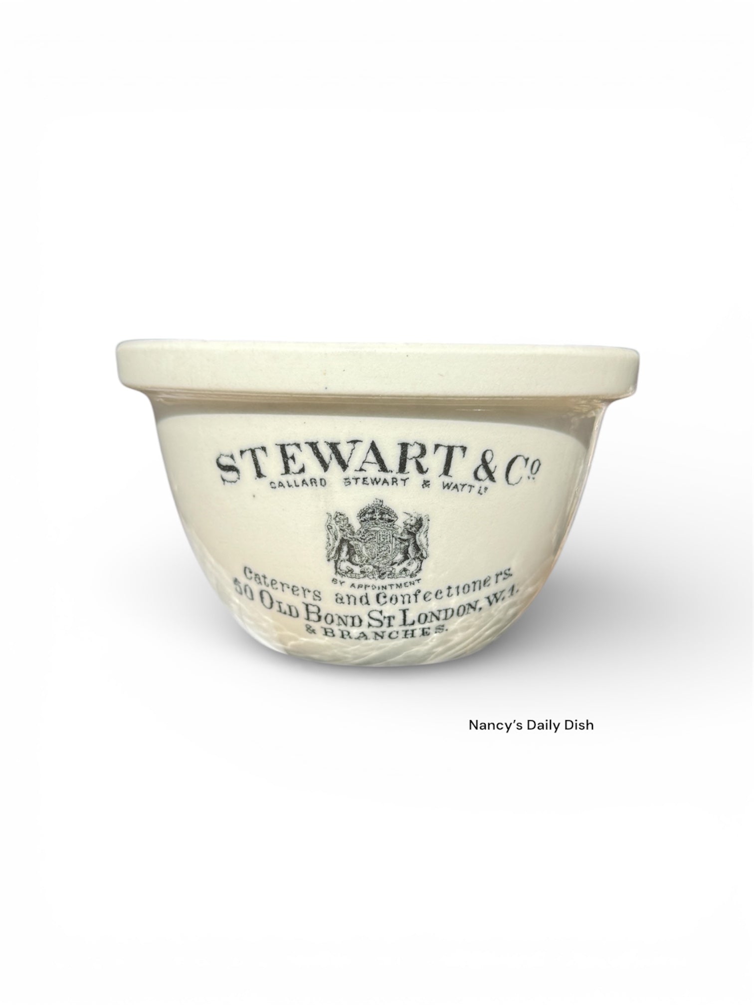 For consideration is this transfer printed pudding bowl advertising Stewart & Co. It is a wonderful piece of kitchenalia made by Wedgwood. This would be great for use or decor!