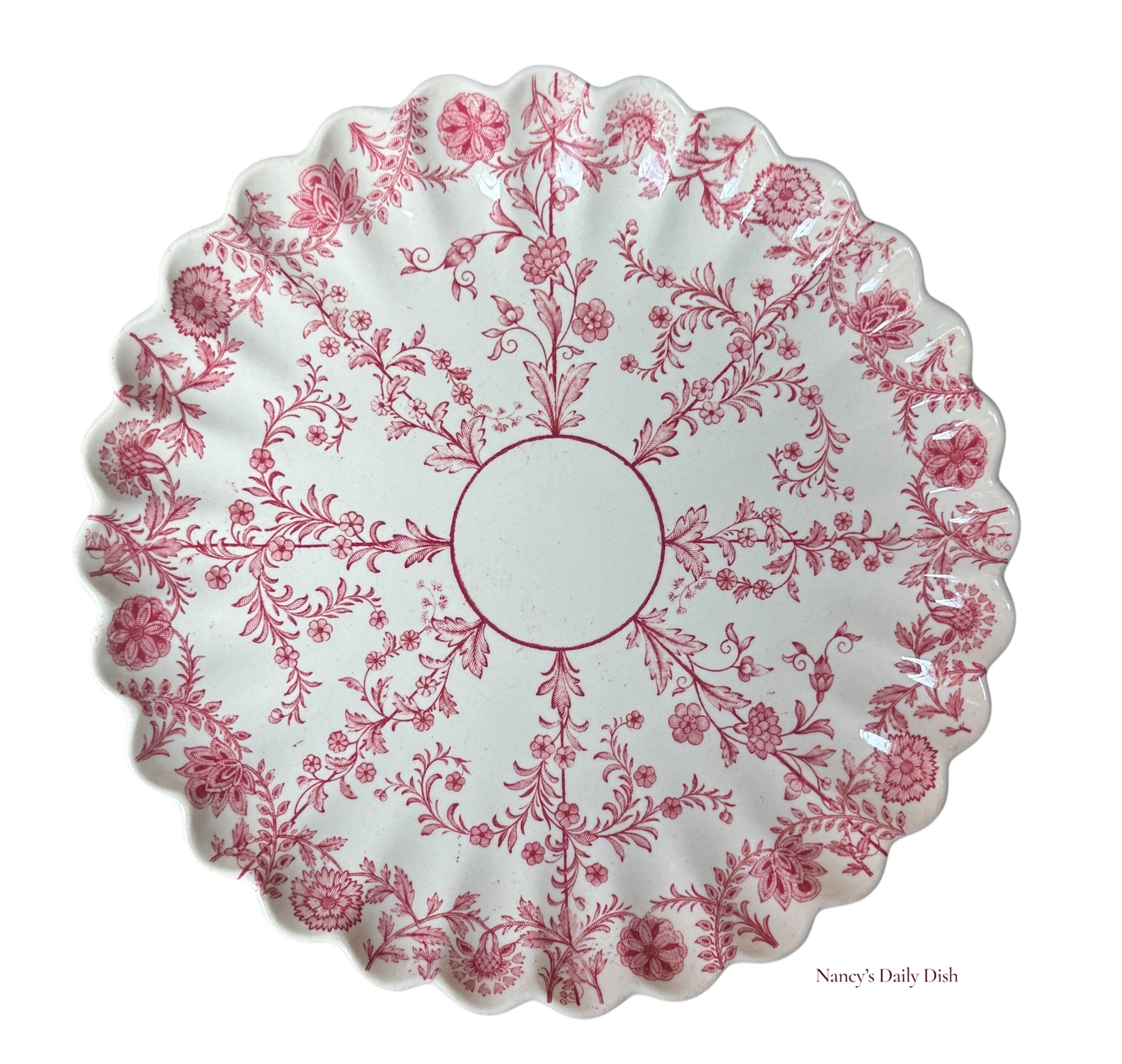 Antique Spode Copeland Red Transferware Fluted Edge Plate Flowers