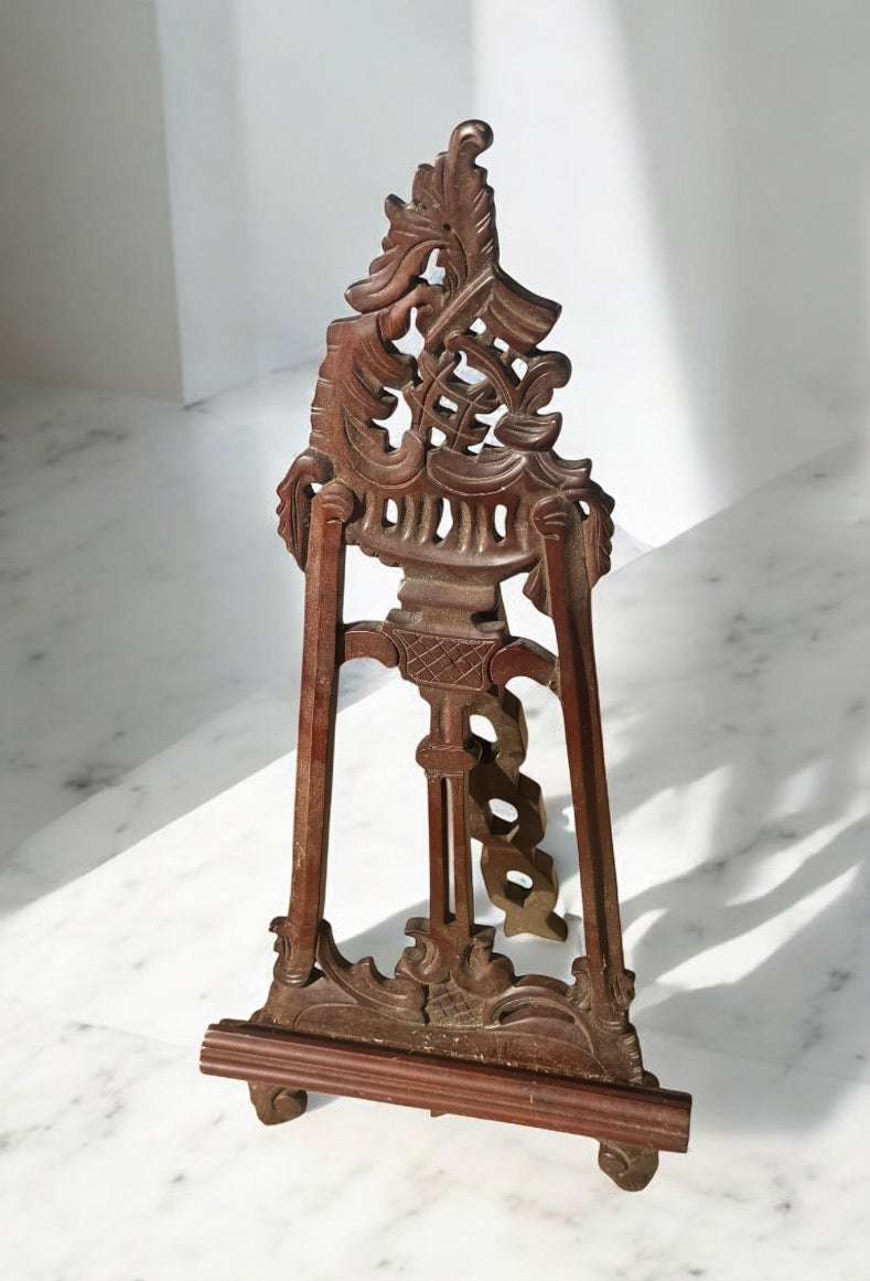 Hand carved mahogany easel for tabletop