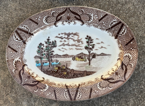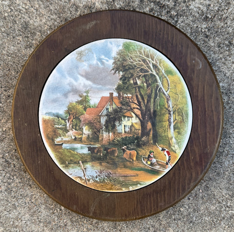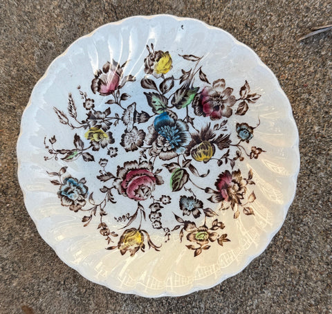 Wedgwood Brown Transferware Spring Plate Basket of Pink and Yellow Flowers Creamware Embossed Border