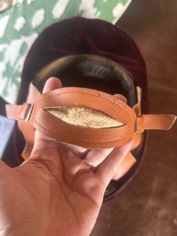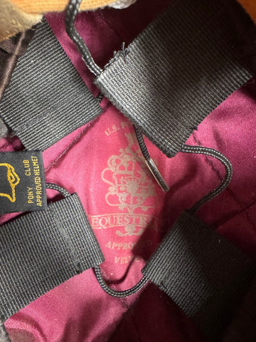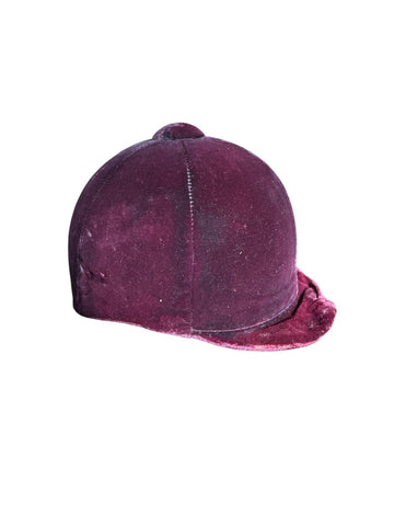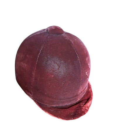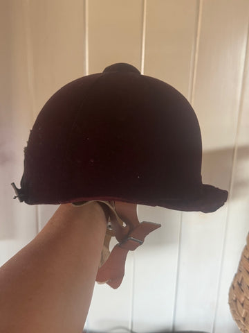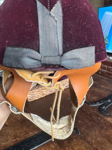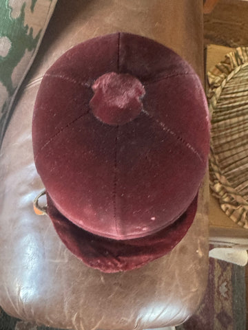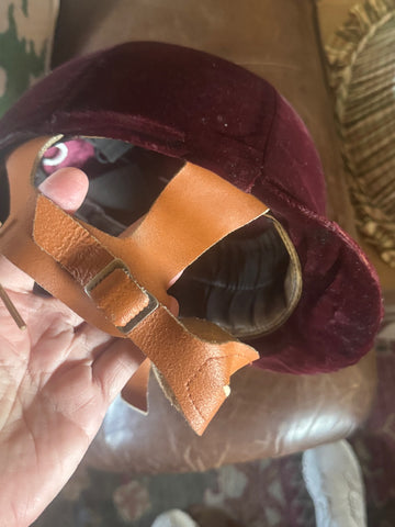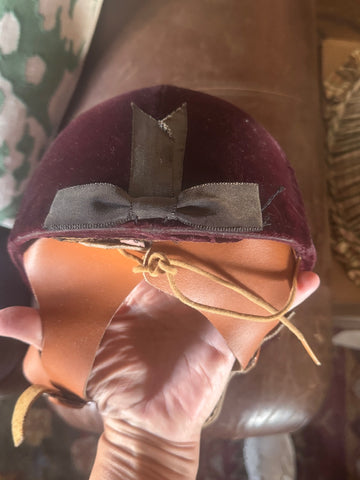 Vintage Deep Eggplant Colored English Equestrian Velvet Riding Helmet w/ Leather Straps