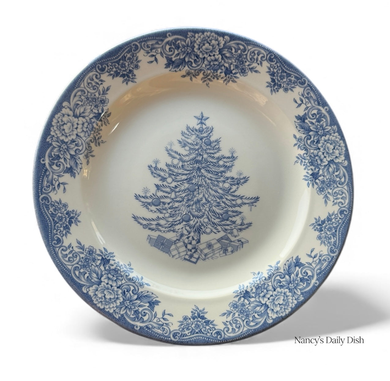Beautiful new Royal Stafford English Christmas tree plate. The tree is decorated and piled below are bow topped packages it has a lovely floral border!