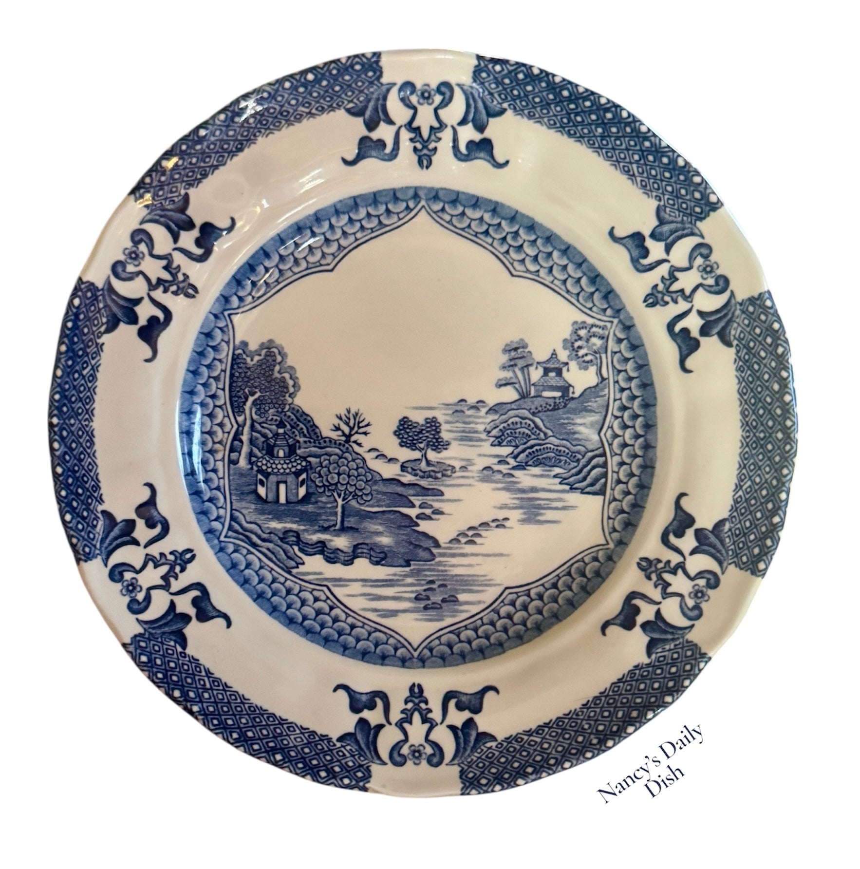 Vintage Grindley English Chinoiserie Landscape Star Salad Plate Aesthetic Blue Transferware