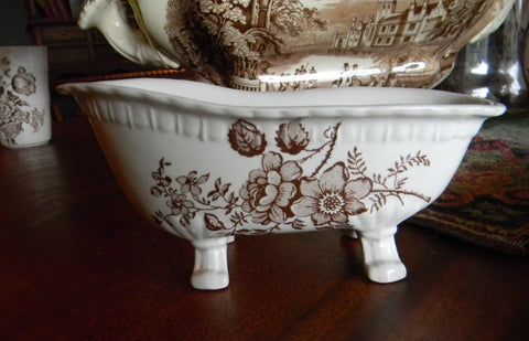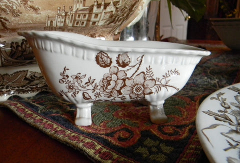Brown Polychrome Transferware Tab Handled Platter Italian Scenery