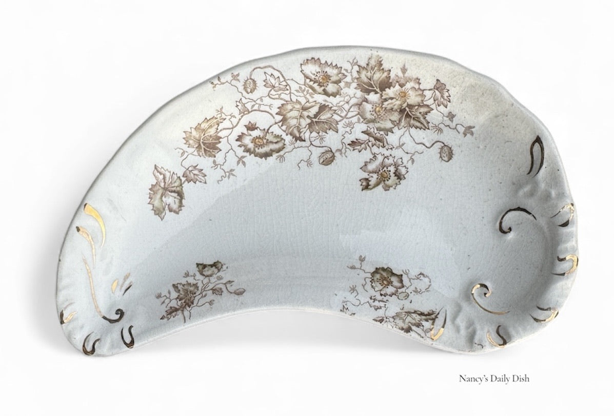 Antique English Ironstone Aesthetic Movement Crescent Plate Bone Dish