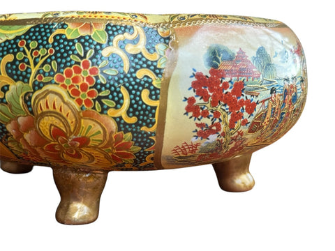 Vintage Green Transferware Floral Chinoiserie Ginger Jar / Cookie Jar Crown Devon
