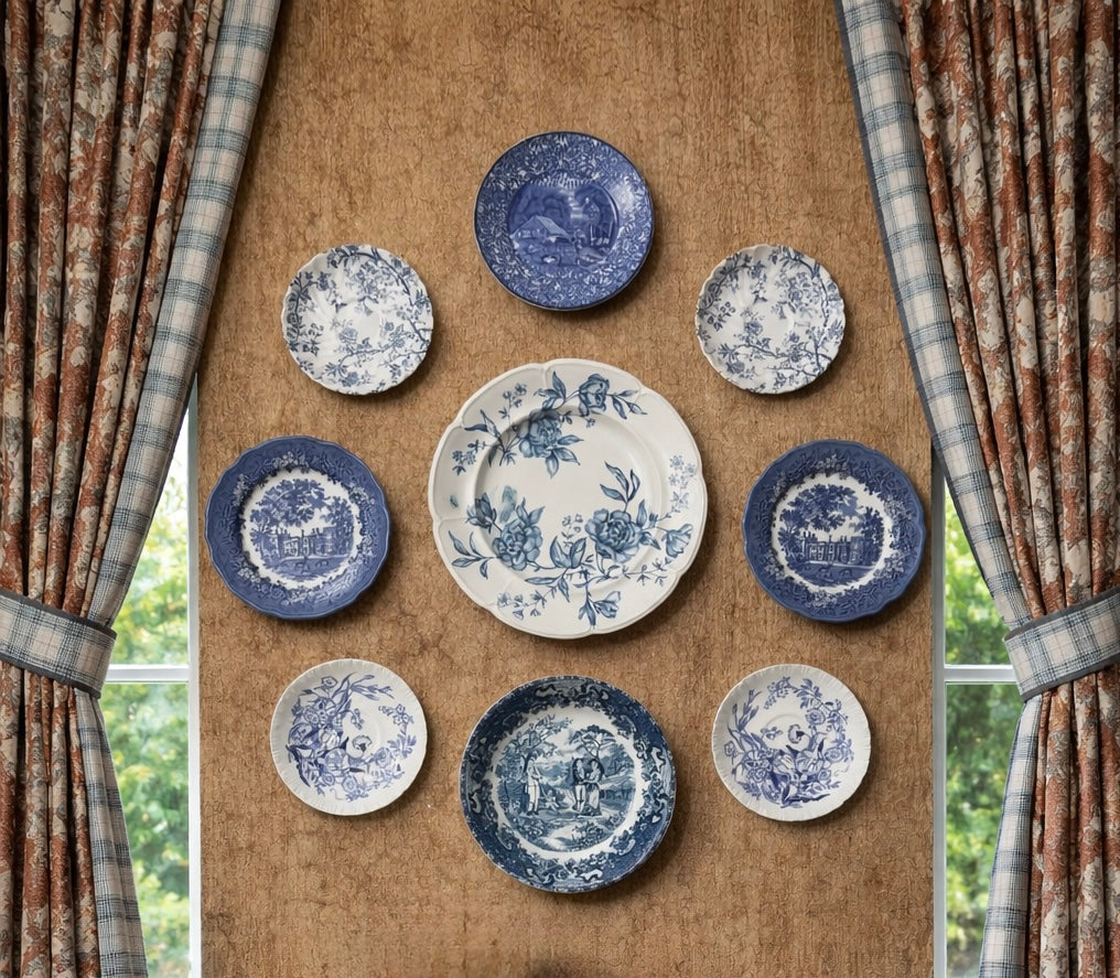 Instant Platewall Display - Collection - Blue & White English Transferware Plates Pastoral & Florals 9 Mix n Match