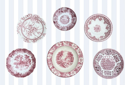 Instant Wall Display - Collection of Multicolored English Transferware Plates - 11 Mix n Match