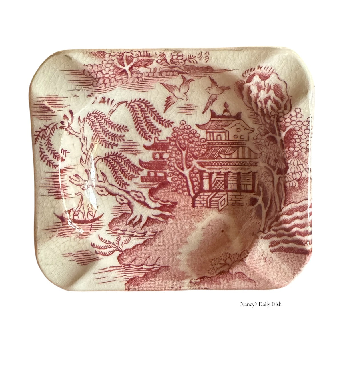 Vintage Ashtray Chinoiserie Willow English Red Transferware