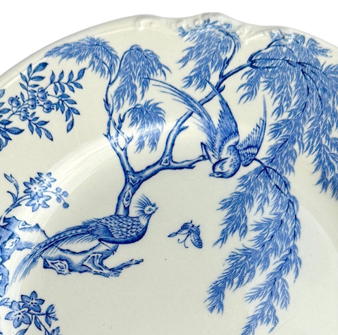Antique English Transferware Blue & White Plate w/ Stylized Pheasants & Peony & Plum Blossoms