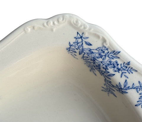 Antique English Transferware Blue & White Serving Bowl w/ Stylized Pheasants & Peony & Plum Blossoms