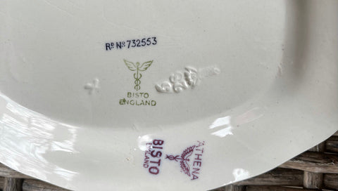 Here is a vintage, beautiful round platter by Spode Copeland. This is a perfect size for a cake or big plate of cookies. The pattern is called Mayflower and features a transfer in the delicate shade of lilac with hand applied enamel color in the various roses. Each piece has a slightly different floral center in pink shades with touches of green and yellow. It's an absolutely stunning pattern, very collectible and highly sought as well. The Mayflower design was first registered in 1929.