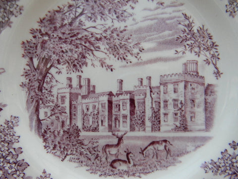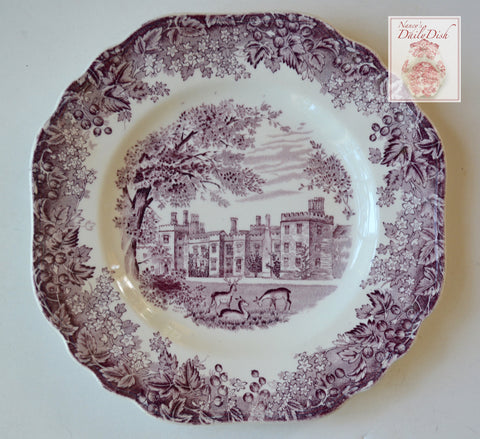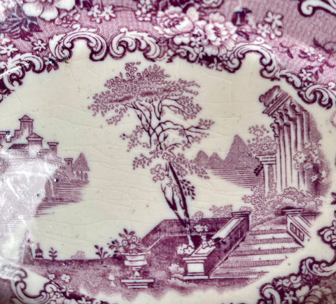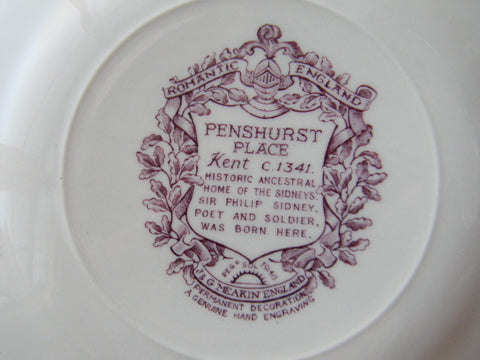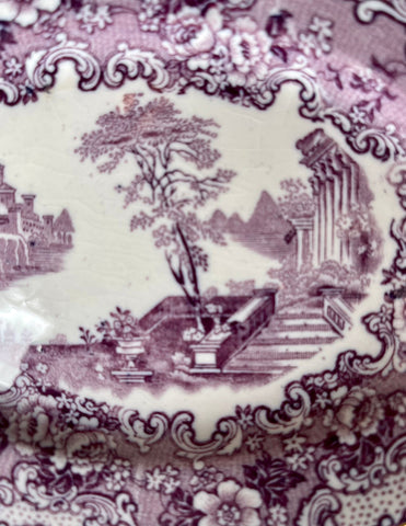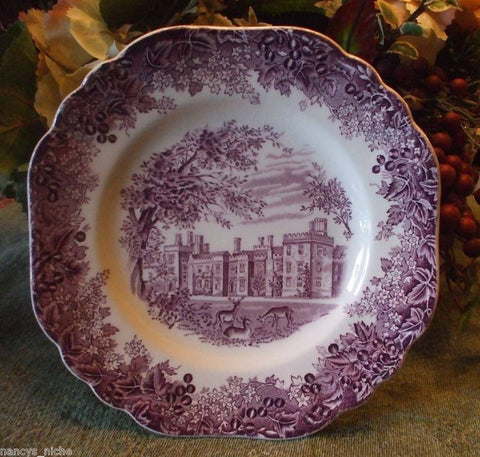 Lg 13" Spode Mayflower Periwinkle Purple / Lavender Transferware Round Chop Plate Platter w/ Hand Painted Pink Roses